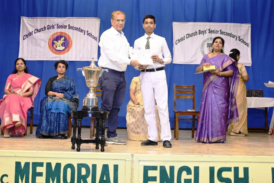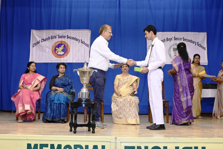The Annual Prize Distribution of Christ Church Boys' Senior Secondary School was held on 6th September 2025 in Robinson Hall, graced by our Hon’ble Bishop and Chairman, The Rt. Rev. Ajay Umesh James, Chief Guest Brig. Ritesh Behl, Madam Jyoti Behl, dignitaries, and proud parents. The celebration began with the School Hymn and a delightful welcome dance by Nursery students, followed by captivating performances – Wings of Hope, Beyond the Battlefield, Tribal and Patriotic Dances – and the vibrant KG presentation Rhythm of Health, which drew great appreciation. The English play You Are Enough, choir renditions, and Christ Church Got Talent mesmerized the audience. Our Principal, Mrs. L. M. Sathe, presented the Annual Report, and the Chief Guest felicitated the prize winners, praising the programme’s creativity ,discipline and brilliance. The event concluded with a powerful note of gratitude, celebrating the spirit of excellence, creativity, and pride that define Christ Church Boys’ Senior Secondary School.