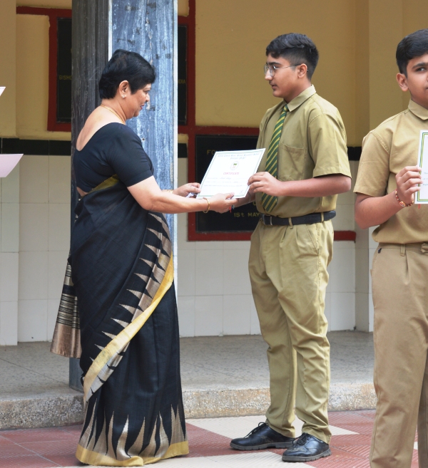Teachers’ Day was celebrated with great respect and admiration on 4th September 2025 during the morning assembly. The programme was organised to honour the invaluable contribution of teachers in shaping the lives of students. The celebration began with the Prefect Council greeting our respected Principal, Mrs. L. M. Sathe, along with all the teachers, with roses as a mark of respect and gratitude. This was followed by a short skit presented by the students and a heartfelt message expressing their appreciation. Two students, dressed as a male and a female teacher, symbolically represented the entire teaching fraternity — a gesture that deeply touched everyone present. Soft, soothing music played in the background, creating a warm and reflective atmosphere. The programme concluded with a short prayer, leaving everyone with a sense of gratitude and inspiration.