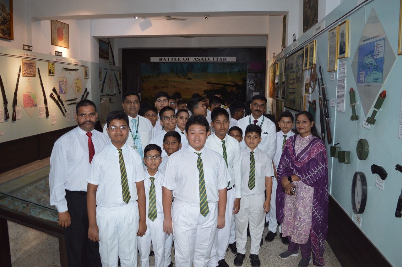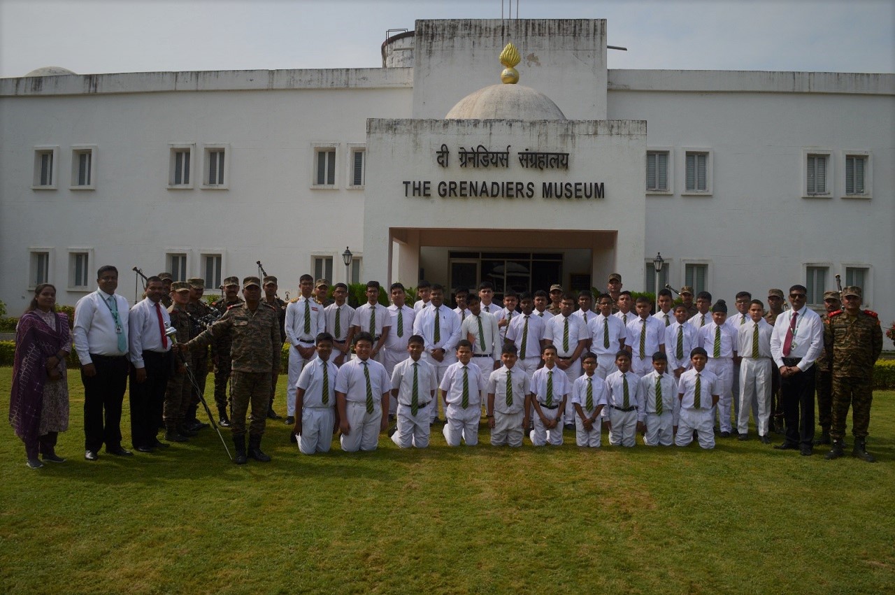 On 11th October, 2025 thirty three (33)students along with their teachers, went on an educational trip to the Grenadiers Regimental Centre (GRC), JAK and Signal Museum. The visit aimed to enhance the students’ understanding of the Indian Army and its glorious history. The JCO (tour guide) explained in detail about the various arms and ammunition, the history of different regiments, and the awards and decorations of the Indian Armed Forces. Students also witnessed an impressive Pipe Band Display and even got an opportunity to showcase their own skills. Their curiosity was addressed through an engaging interactive question-and-answer session, where they clarified their doubts and learned many interesting facts. Overall, it was an enriching and memorable experience, and the students noted down important points to deepen their knowledge and awareness about the Indian Army.