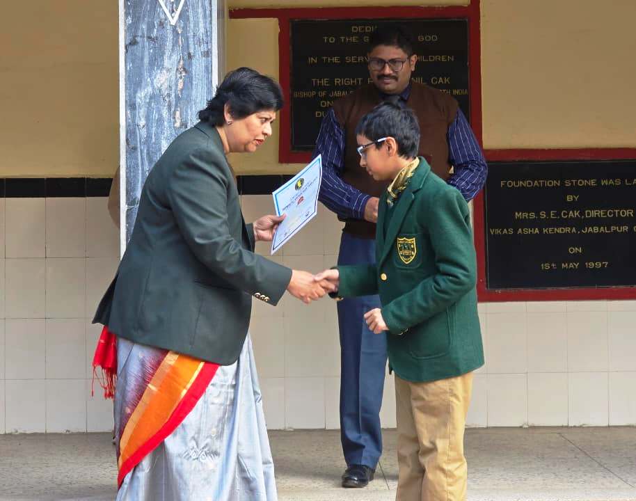 It is a matter of pride that our students namely Akash Rai of Class-XI, Ansh Bhojak of Class-IX and Kashyap Mishra of Class-10 participated in the M.P State Tourism Quiz Competition held in Bhopal on the 26th of September 2024 in Minto Hall Bhopal. Out of 55 districts of M.P our school performed extremely well and secured the 6th position. In the District Level held at MLB School, Jabalpur out of 265 schools our schools stood First.