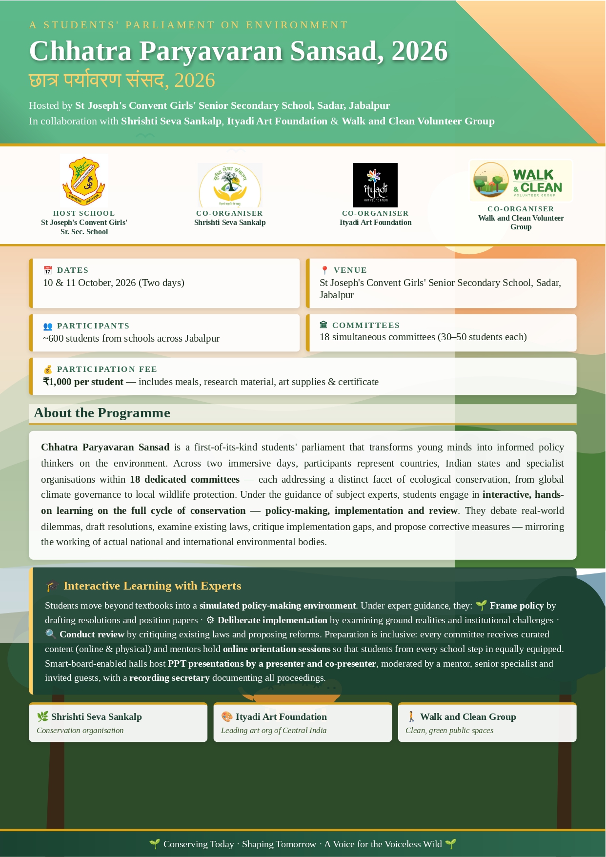 The orientation session for Chhatra Paryavaran Sansad was conducted by Dr. Anushri Jamdar, a leading diabetologist of the city and director of the Triveni Health care ltd., along with the members of the organizing committee on the 23rd April, 2026.